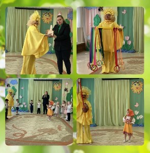 Весна - это пора возрождения природы и начала новой жизни. Чем не повод для праздника? Чтобы встретить Весну малыши пригласили на свой праздник Солнышко. Но Солнышко было огорчено тем, что потеряло все свои жаркие лучики. Детки помогали Солнышку искать лучики, и в их поисках им помогали Мишка, Каркуша и Матрешка. Все герои праздника со всеми детьми весело и задорно пели песни, танцевали, играли на деревянных ложках, с шишками, с платочками, тем самым помогли Солнышку вернуть потерянные лучики. И вновь Солнышко заулыбалось и засияло. В благодарность за помощь, Солнышко пригласило деток прокатиться на музыкальной карусели и подарило корзиночку со сладким угощением. Деткам очень понравился весенний праздник, это было заметно по их блеску в глазах и радостным улыбкам!