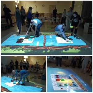 Во-вторых, родители увидели функционал интерактивного пола "Magium" на практике и проявили к нему неподдельный интерес. С удовольствием поиграли в некоторые игры, в том числе и командные, используя объемные игрушки VAY TOY, полностьювоссоздали картину и разместили фигуры в тех местах, где они были отображены изначально.