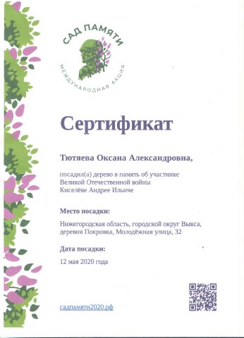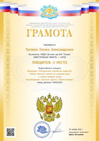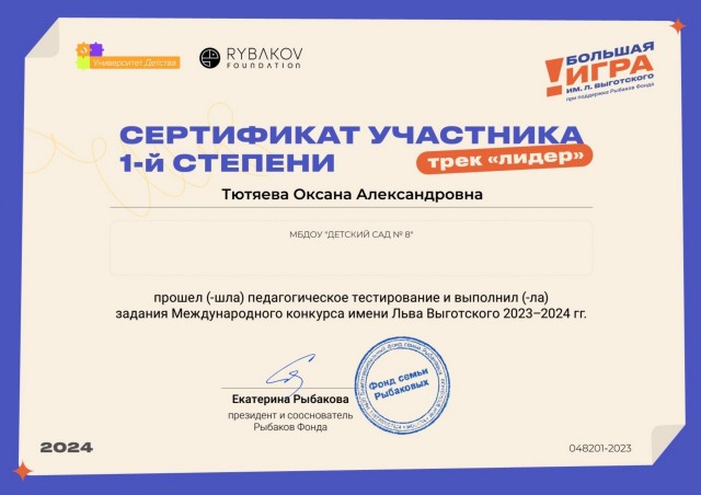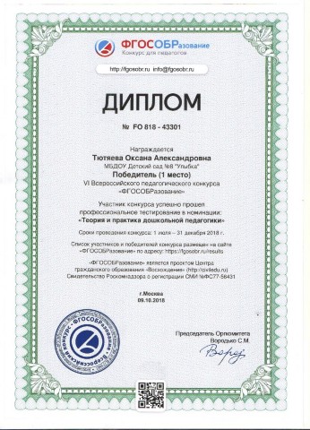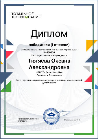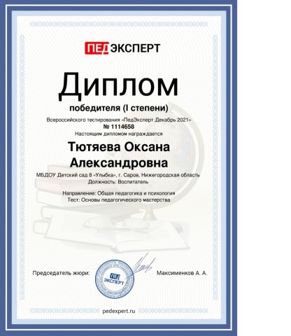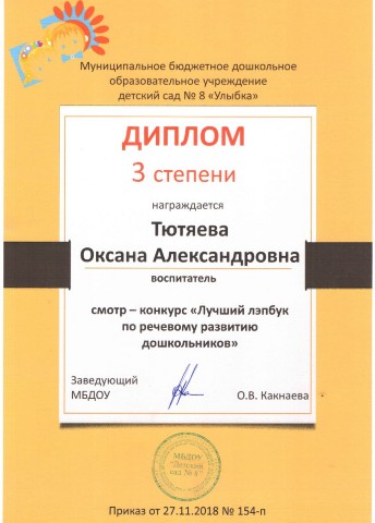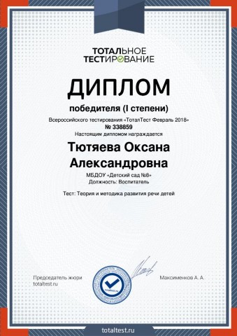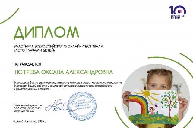 Тютяевой Оксаны Александровны