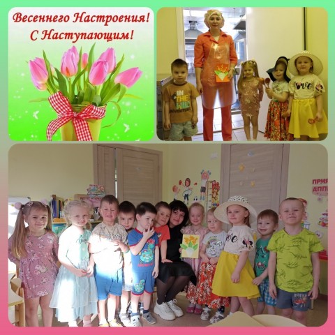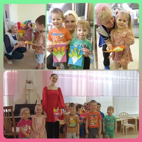 Прекрасный праздник 8 Марта невозможно себе представить без красивых цветов, тёплых поздравлений и милых подарков, в том числе и сделанных своими руками. Особенно трогательнными получаются детские поделки на 8 Марта. Наши малыши, с помощью воспитателей сделали и подарили свои поздравительные открытки не только своим любимым мамам и бабушкам, но и сотрудникам детского сада.