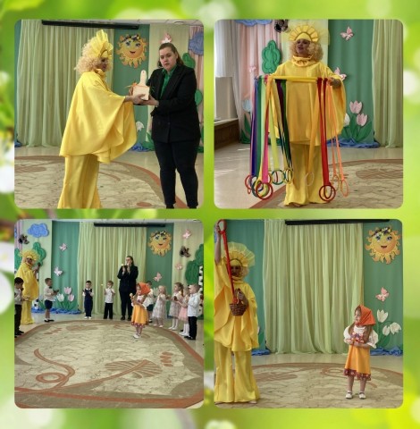 Весна - это пора возрождения природы и начала новой жизни. Чем не повод для праздника? Чтобы встретить Весну малыши пригласили на свой праздник Солнышко. Но Солнышко было огорчено тем, что потеряло все свои жаркие лучики. Детки помогали Солнышку искать лучики, и в их поисках им помогали Мишка, Каркуша и Матрешка. Все герои праздника со всеми детьми весело и задорно пели песни, танцевали, играли на деревянных ложках, с шишками, с платочками, тем самым помогли Солнышку вернуть потерянные лучики. И вновь Солнышко заулыбалось и засияло. В благодарность за помощь, Солнышко пригласило деток прокатиться на музыкальной карусели и подарило корзиночку со сладким угощением. Деткам очень понравился весенний праздник, это было заметно по их блеску в глазах и радостным улыбкам!