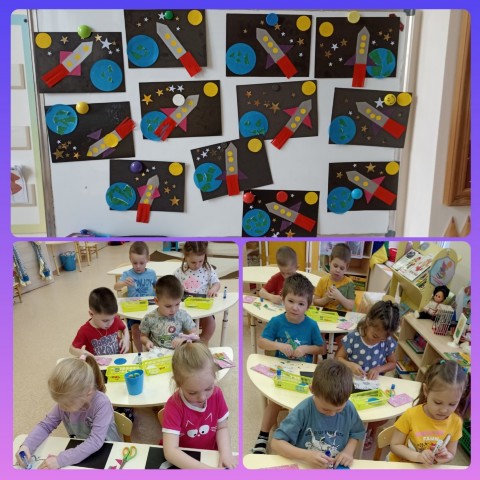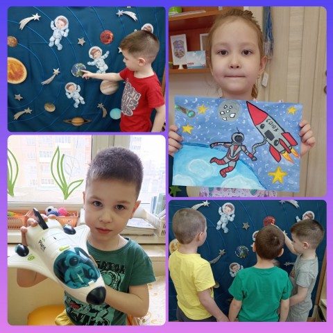 12 апреля в России отмечают День космонавтики. Для детей тема космоса очень интересна, в ней много необычного, завораживающего. В нашей группе прошла тематическая неделя, посвященная Дню космонавтики. В течение недели дети знакомились с информацией о космосе, о первом полете человека в космос. Проведенные мероприятия в группе были направлены на развитие познавательных и творческих способностей детей, которые осуществлялись через различные виды деятельности: беседы, рассматривание иллюстраций, составление разрезных картинок по теме "Космос", рисование, выполнение аппликации, проведение опыта. Результат проведенного опыта "Межгалактический полёт", а именно, движение ракет и создаваемые ими разноцветные вихри, вызвали у детей особый восторг. Итоговым мероприятием было спортивное развлечение "Путешествие в космос". Для того, чтобы соревноваться и отправиться в космическое путешествие, дети разделились на две команды "Луноход" и "комета". Как настоящие космонавты, дети прошли "предполетную" физическую подготовку - разминку. Дети увлеченно отгадывали "Космические загадки", с удовольствием и азартом принимали участие в эстафетах "Себери метеориты", "Невесомость", играли в подвижные игры, конструировали ракеты из модулей. Спортивное развлечение прошло позитивно и задорно, оставив за собой самые лучшие впечатления у детей.