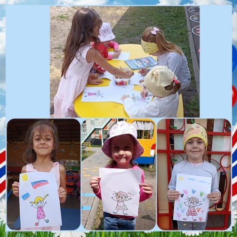 12 июня в нашей стране отмечается День России. Это праздник свободы, мира и добра. Он символизирует единство всего нашего многонационального народа. День России - это отличный повод рассказать детям еще раз об истории нашей великой страны, о многообразии народных традиций. С детьми была проведена беседа "Наша Родина - Россия" с использованием презентации "Мы живем в России". Все вместе дети отгадывали загадки о нашей великой стране, пели гимн Российской Федерации, а также смогли показать какие они смелые, ловкие и быстрые, учавствуя в эстафетах:"Собери матрёшку", "Собери Российский флаг" и "Символы России". А красочные рисунки добавили хорошего настроения!