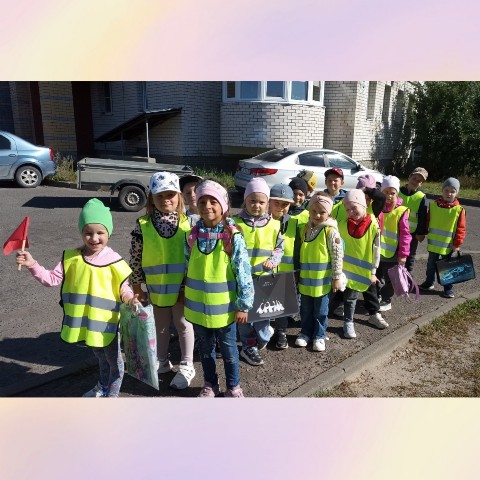 Практическое занятие-поход "К светофору в жилетках". Группа детей в специальных детских световозвращающих жилетах совершила выход к ближайшему переходу со светофором. На месте были отработаны и закреплены правила перехода проезжей части.
