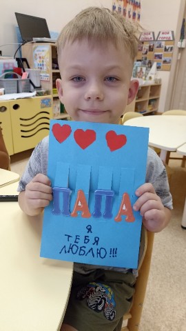 Этот праздник - замечательный повод ещё раз сказать "спасибо" нашим мужчинам за их заботу, силу и поддержку. Накануне праздника в нашей группе царила творческая атмосфера. Каждый хотел, чтобы его подарок для папы стал самым красивым. И у ребят это получилось! В каждом сувенире, в каждой открытке - живёт частичка детской души и безграничная вера в то, что их папа - самый лучший на свете.