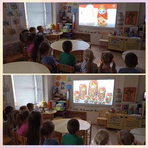 Для закрепления знаний дети посмотрели познавательную презентацию "История возникновения русской матрёшки". Из неё ребята узнали об истоках появления матрёшки и её прототипе - японской фигуре мудреца Фукурумы, а также о том, что превую матрёшку создали в мастреской "Детское воспитание", а расписал её художник Сергей Малютин. Во время просмотра мы снова подчеркнули, что русский мастер, создавая свою игрушку, вложил в неё глубокий смысл, который близок и понятен каждому. Проведение таких тематических дней способствует патриотическому, духовно-нравственному и эстетическому воспитанию нашего подрастающего поколения.