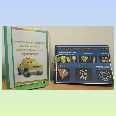 В информационном уголке для родителей была подготовлена памятка "Важность световозвращающих элементов", содержащая информацию о статистике и фактах о ДТП с участием детей-пешеходов в темное время суток. Объяснение принципа работы фликера и его необходимости. Советы по выбору качественных фликеров и правильному их размещению на одежде и рюкзаках ребенка.