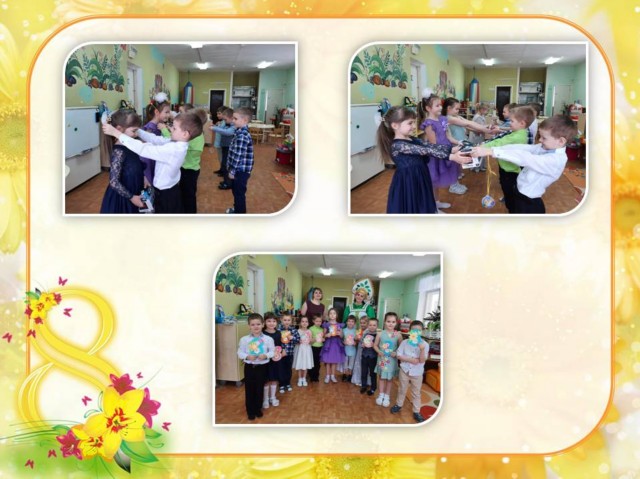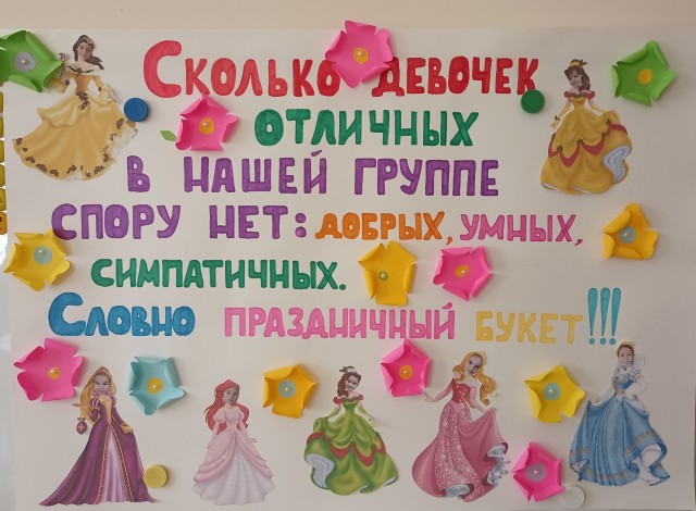 Наступила долгожданная перемена: февраль на календаре сменился первым весенним месяцем – мартом. А это значит, что в начале марта мы отмечаем самый весенний, самый нежный, любимый, красивый и милый праздник – Международный женский день. 4 марта в нашей группе по традиции прошел утренник, посвященный такому прекрасному празднику. На утреннике дети выразительно читали стихотворения о маме, бабушке, пели песни, танцевали и участвовали в конкурсах. И без подарков в такой замечательный день тоже не обошлось. Дети вместе с воспитателями создавали своими руками подарки не только для мам, но и для всех сотрудниц – женщин детского сада. В конце праздника мальчики поздравили девочек и вручили подарки. Праздник, несомненно, привнес в жизнь детского сада атмосферу весенней радости и счастья.