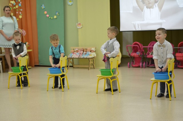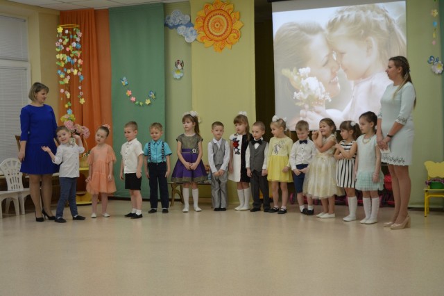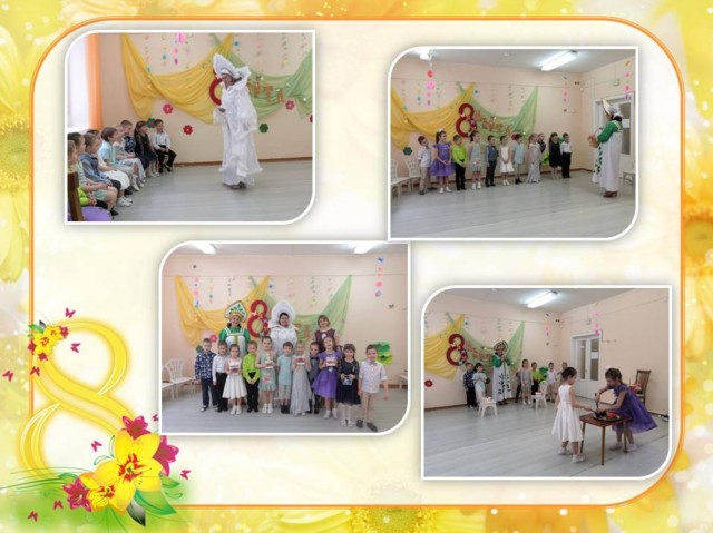 Дети с нетерпением ждали праздника, чтобы поздравить своих любимых мам и бабушек. Все вместе, дружно и с большим удовольствием исполняли песни о маме, бабушке, танцевали, читали стихи. Порадовали зрителей исполнением шуточной сценки "Коляски", где дети выступили в роли будущих мам и пап. В конце праздника мамам и бабушкам были подарены открытки, сделанные своими руками. Праздник получился удивительно светлым и по-весеннему "теплым".