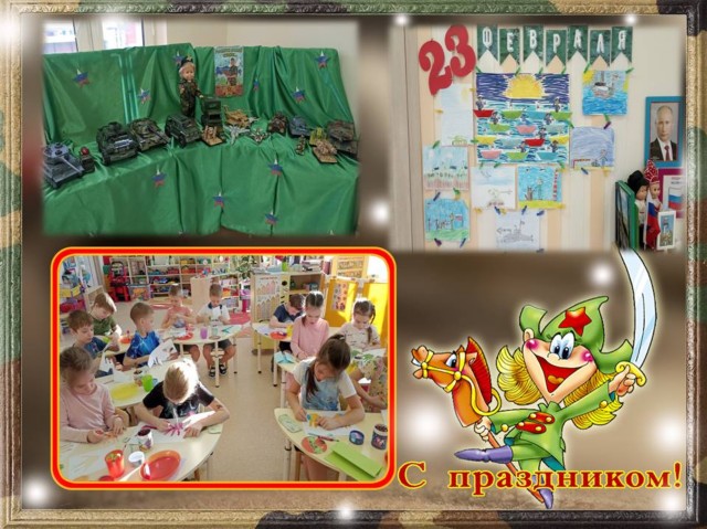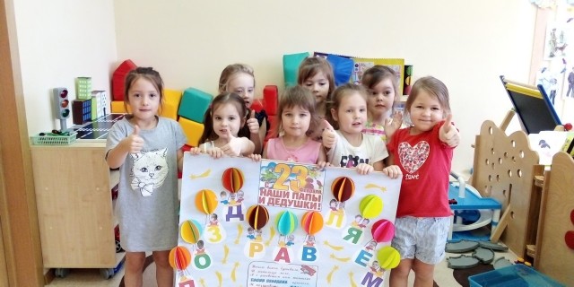 23 февраля, наша страна отмечает День защитника Отечества. Это праздник настоящих мужчин – смелых и отважных, ловких и надежных, а также мальчиков, которые вырастут и станут защитниками Отечества. В преддверии праздника в нашей группе прошла тематическая неделя "Наша армия", в течение которой дети знакомились с традициями праздника. На занятиях, полученные знания дети воплотили в своих рисунках, аппликациях, и конечно в изготовлении подарков для своих пап. С большим интересом девочки в совместной работе с воспитателями оформили стенгазету для мальчиков. Итогом тематической недели стал музыкально-спортивный праздник, где дети участвовали в конкурсах, эстафетах, демонстрируя свою сообразительность, ловкость, сноровку. В конце праздника наши мальчики были награждены памятными медалями и подарками.
