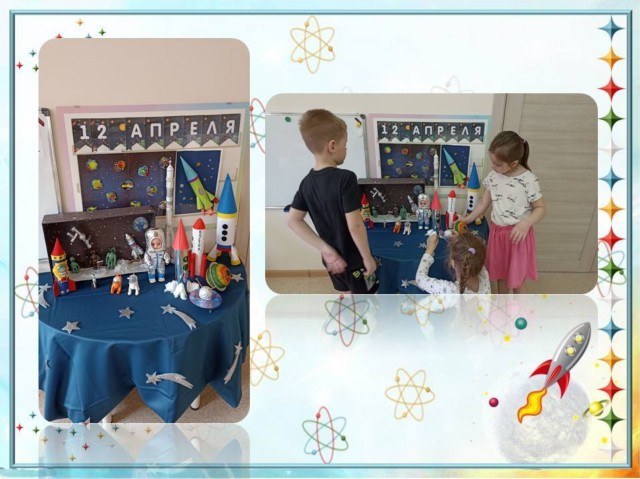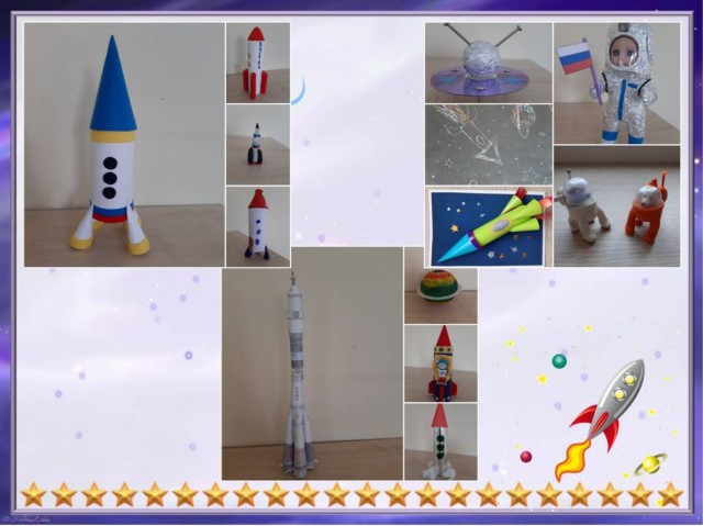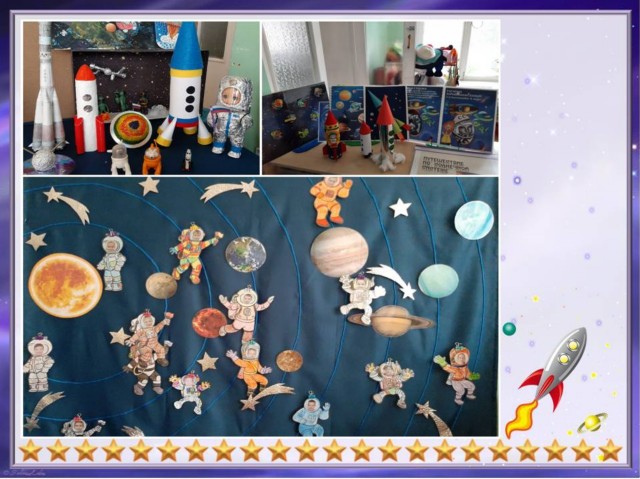День космонавтики – знаменательное для России событие в истории покорения космоса, которое празднуется 12 апреля. Тема космоса притягательна как для взрослых, так и для детей, ведь космос-это таинственность, новые знания и простор для фантазии. А 12 апреля 2021 года - особенный праздник. Исполнилось 60 лет со дня первого полета человека в космос. В рамках тематической недели "Космос", дети узнавали об удивительных открытиях в космосе, о первом спутнике и полете Гагарина, первой женщине космонавте Валентине Терешковой, о том, как четвероногие друзья человека проложили путь к звездам, о планетах – больших и маленьких, о высадке человека на Луну, о современных космических станциях и полетах к Марсу и о других интересных явлениях, связанных с космическим пространством. Знания, полученные в детском саду, дети закрепили в своих творческих работах. Рисунки и поделки детей с родителями были выполнены с большой фантазией. Итоговым мероприятием по теме недели прошло спортивное развлечение "Космические просторы".