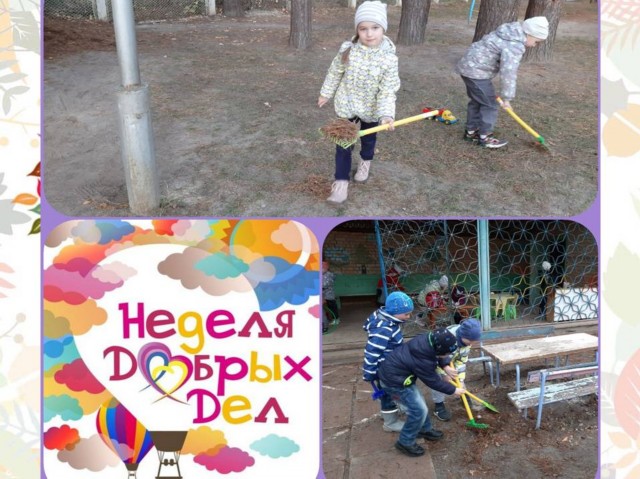 В детстве человек должен пройти школу воспитания добрых чувств. Человеческая доброта, милосердие, умение радоваться и переживать за других людей, создают основу человеческого счастья. С 20 по 26 сентября 2021 года, в нашем детском саду прошла акция "Неделя добрых дел". Участие в Неделе Добрых Дел позволило дошкольникам приобрести опыт "бескорыстного оказания помощи другим". Ведь главное в неделе добра – не громкие слова, а реальные дела. В течение недели в группе провели: акцию по сбору корма животным и посетили СЮН, акцию "Сделай свой садик красивее", в которой все дети наводили порядок в группе, украшали окна осенними листочками, приняли участие в субботнике на своём прогулочном участке. Также ребята передавали "Тепло своих рук" в поделках, которые послужили украшением группы.