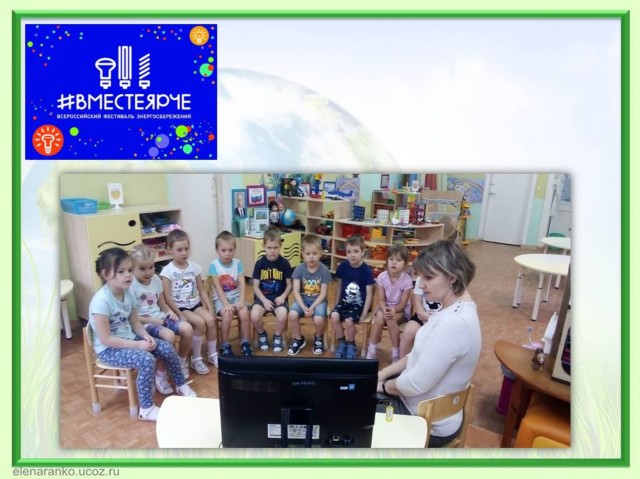 В рамках Всероссийского фестиваля "Вместе ярче" в нашей группе проводились мероприятия, из которых дети узнали, как важно беречь электроэнергию, природные ресурсы и что для этого нужно делать. Если с детства приучать детей к бережному отношению к природным богатствам, то в будущем они будут экономно и разумно их использовать и фестиваль – отличная возможность донести это до детей. Из беседы на тему "Где живет электричество" дошколята были информированы, как появляется электроэнергия, что без энергии современная жизнь немыслима, что чрезмерное ее расходование пагубно влияет на окружающую среду. Итогом работы в рамках фестиваля стал нарисованный плакат на тему "Берегите электроэнергию и природные ресурсы".
