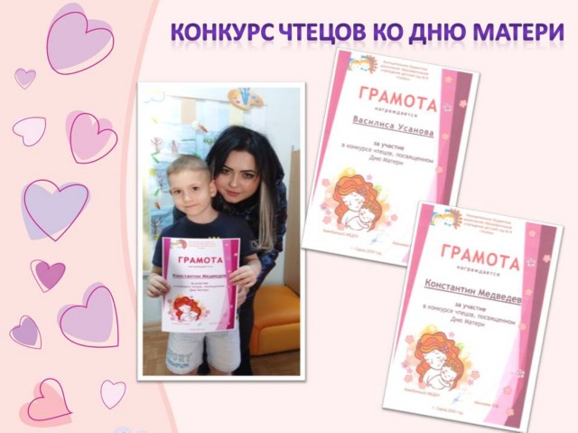 Среди многочисленных праздников, отмечаемых в нашей стране, День Матери занимает особое место. В этот день хочется сказать слова благодарности всем матерям, которые дарят ласку, нежность и любовь. Ежегодное проведение мероприятий, посвященных этому дню, стало доброй традицией в нашем детском саду. Нынешняя ситуация, связанная с пандемией, внесла свои изменения в нашу жизнь, все больше приходится работать с родителями детей в дистанционном формате. В преддверии Дня Матери дети разучивали стихи и песни о маме, оформляли поздравительную стенгазету, делали открытки своим мамочкам. А 23 ноября, в нашей группе прошел конкурс чтецов среди детей, посвященный Дню Матери. В конкурсе приняли участие 12 человек. Каждый старался прочитать свое стихотворение выразительно и ярко, как настоящие артисты. В каждом стихотворении заключалась маленькая история – о первой детской любви, о дружбе, о маминой улыбке, о детских разговорах и подарках для своих мам. Все дети выступили достойно и получили почетные дипломы и грамоты за участие. Выражаем огромную благодарность родителям, участвовавшим в подготовке чтецов к конкурсу.