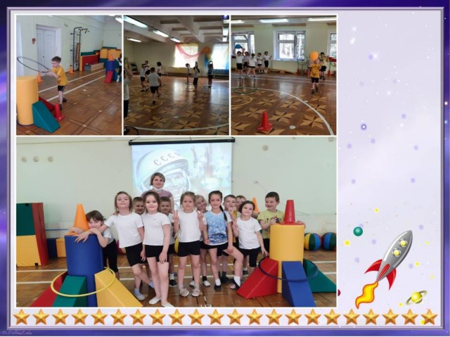 12 апреля в России отмечают День космонавтики в ознаменование первого космического полета. День космонавтики, как и любая важная дата календаря, празднуется в детском саду различными мероприятиями. Проведенные в группе занятия и беседы были направлены на развитие познавательных и творческих способностей детей, которые осуществлялись через различные виды детской деятельности. Итоговым мероприятием дня стал спортивный досуг "Космическое путешествие". Детей ожидали интересные испытания. Как космонавты, они прошли «предполетную» физическую подготовку – это были зарядка и тренировочные упражнения. А затем, с азартом им предстояло принять участие в эстафетах: "Космический корабль", "Луноход", "Метеоритный дождь", "Невесомость". Также, приняли участие в викторине про космос, ответив на все вопросы. Все дети с большим интересом участвовали в эстафетах, старались не подвести свою команду. В ходе проведения спортивного досуга дети зарядились хорошим настроением и получили незабываемые впечатления.